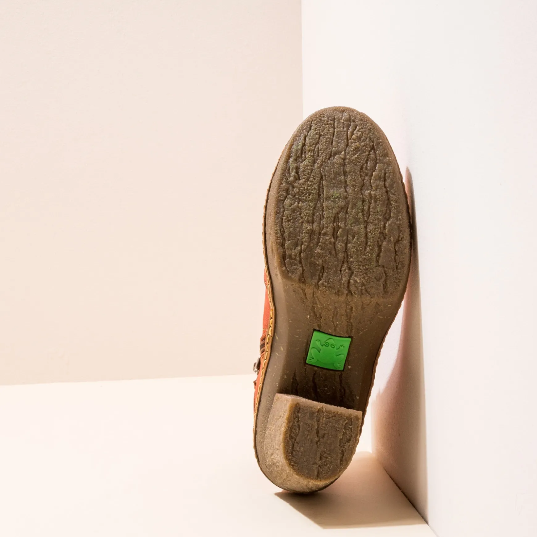 Los Bosques Atlanticos Con Sus Majestuosos Arboles De Hoja Caduca Son Parte De Nuestro Diseno Donde Incluimos La Textura De Su Tronco, El Musgo Y Liquenes Que Suele Crecer De Forma Simbiotica En El Diseno De La Suela De Caucho Con Reciclado. Es Un Tacón En Apariencia Alto, Pero Muy Comodo Gracias A Su Quiebre Y Horma Muy Estudiada, A La Flexibilidad Del Caucho Y Su Plantilla Extraible.