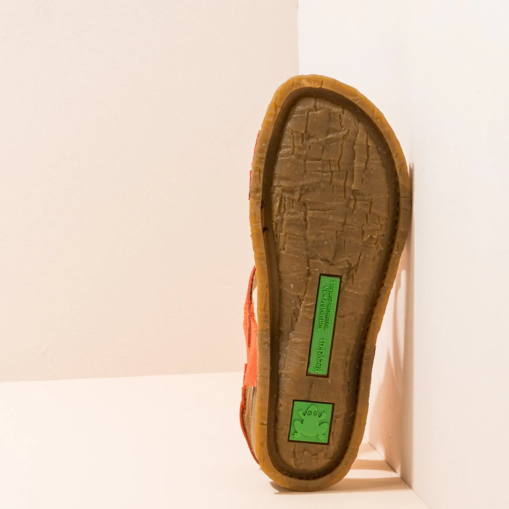 Sandalia Que Unifica Suela De Caucho Reciclado Y Plantilla En Una Sola Pieza Reduciendo Asi Un Componente Y Facilitando Su Reciclaje. El Diseno De La Suela Esta Inspirado En El Tronco De Las Palmeras De La Isla Panglao De Filipinas. Esta Linea Destaca Por Su Flexibilidad. En Su Interior Tiene Alojado Un Memory Foam Reciclado Que Aporta Un Extra De Confort.