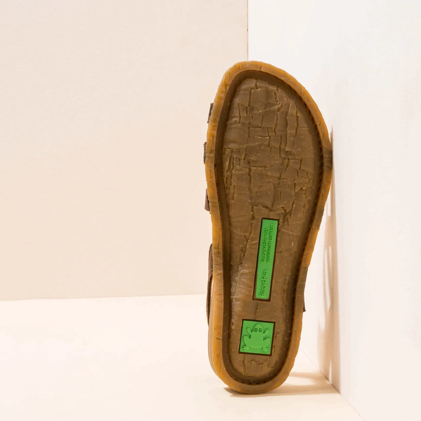 Sandalia Que Unifica Suela De Caucho Reciclado Y Plantilla En Una Sola Pieza Reduciendo Asi Un Componente Y Facilitando Su Reciclaje. El Diseno De La Suela Esta Inspirado En El Tronco De Las Palmeras De La Isla Panglao De Filipinas. Esta Linea Destaca Por Su Flexibilidad. En Su Interior Tiene Alojado Un Memory Foam Reciclado Que Aporta Un Extra De Confort.