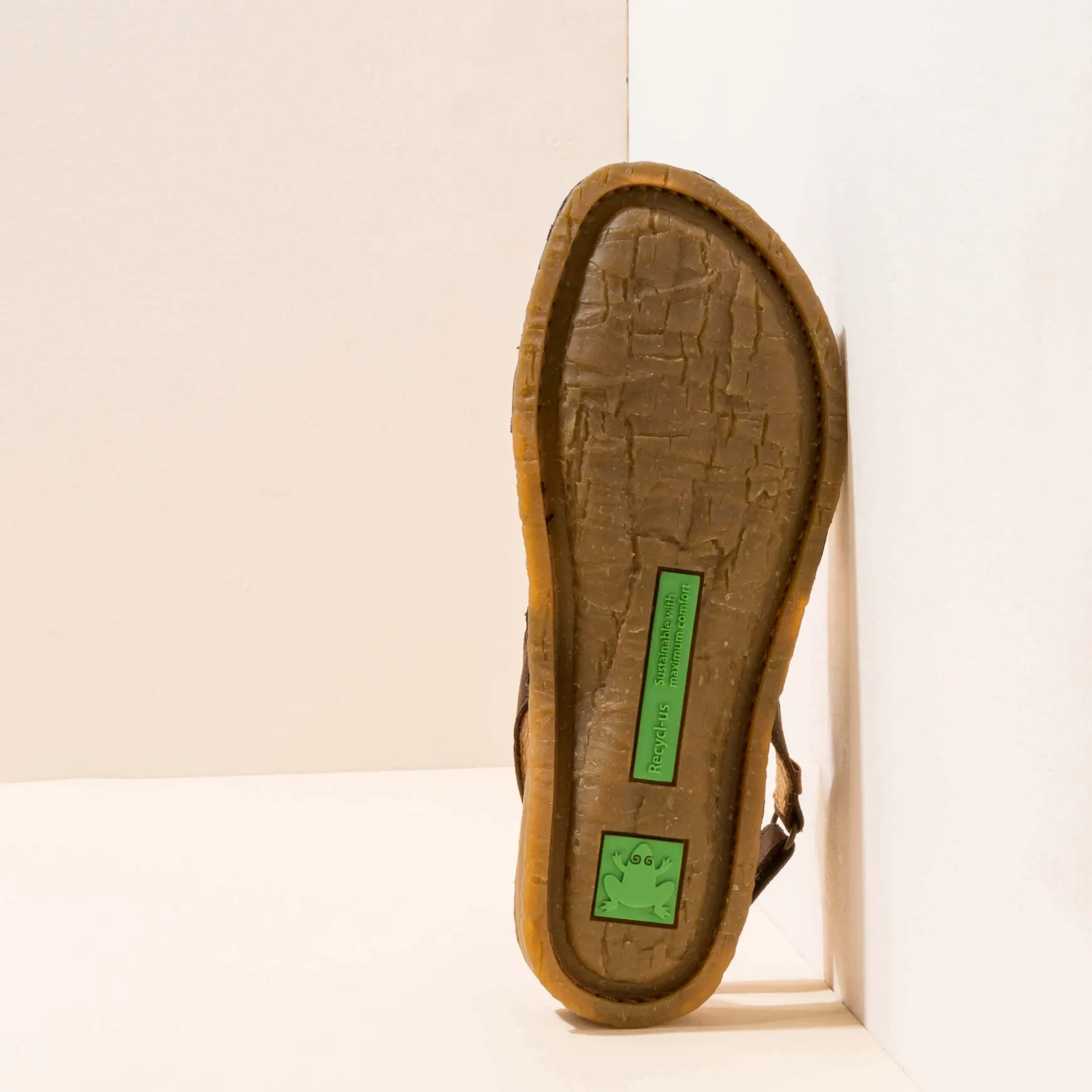 Sandalia Que Unifica Suela De Caucho Reciclado Y Plantilla En Una Sola Pieza Reduciendo Asi Un Componente Y Facilitando Su Reciclaje. El Diseno De La Suela Esta Inspirado En El Tronco De Las Palmeras De La Isla Panglao De Filipinas. Esta Linea Destaca Por Su Flexibilidad. En Su Interior Tiene Alojado Un Memory Foam Reciclado Que Aporta Un Extra De Confort.